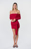 A captivating choice for your next date night or cocktail party. This stunning mini features an elegant off-the-shoulder neckline with long sleeves and dramatic ruching that contours the body. Let the silhouette be the focus and pair it with barely-there heels for a polished finish!
